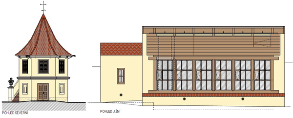 Stavební úpravy glorietu a oranžerie - návrh barevnosti